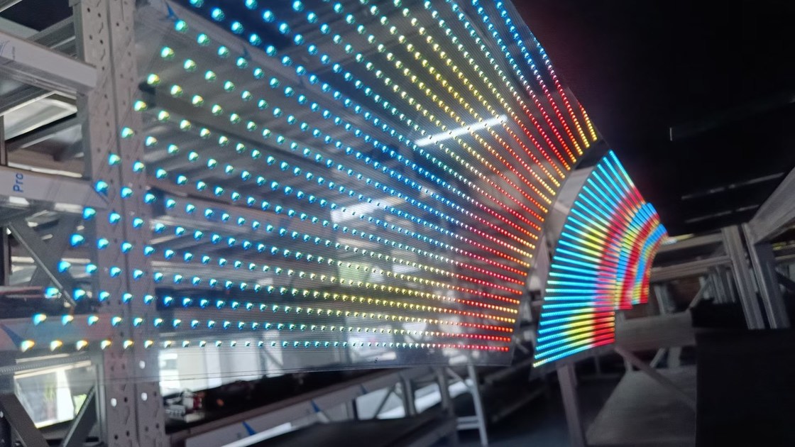 เมื่อไฟ LED เปิด, มันแสดงเนื้อหา, กราฟฟิก, หรือวิดีโอ, ให้สื่อการโฆษณาหรือข้อมูลในขณะที่ยังคงรักษาความโปร่งใสระดับหนึ่ง.